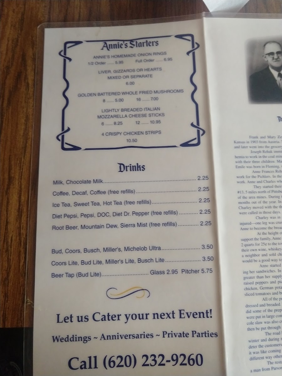 Welcome to Pichler's Chicken Annies, a cherished gem located in Pittsburg, Kansas, renowned for its outstanding fried chicken and warm hospitality. Here, tradition is ingrained in every dish, capturing the essence of classic comfort food. As you explore the menu, you’ll find delicacies like savory chicken strips, succulent chicken livers, and a variety of delectable sides including potato salad and German slaw, each dish crafted to perfection.